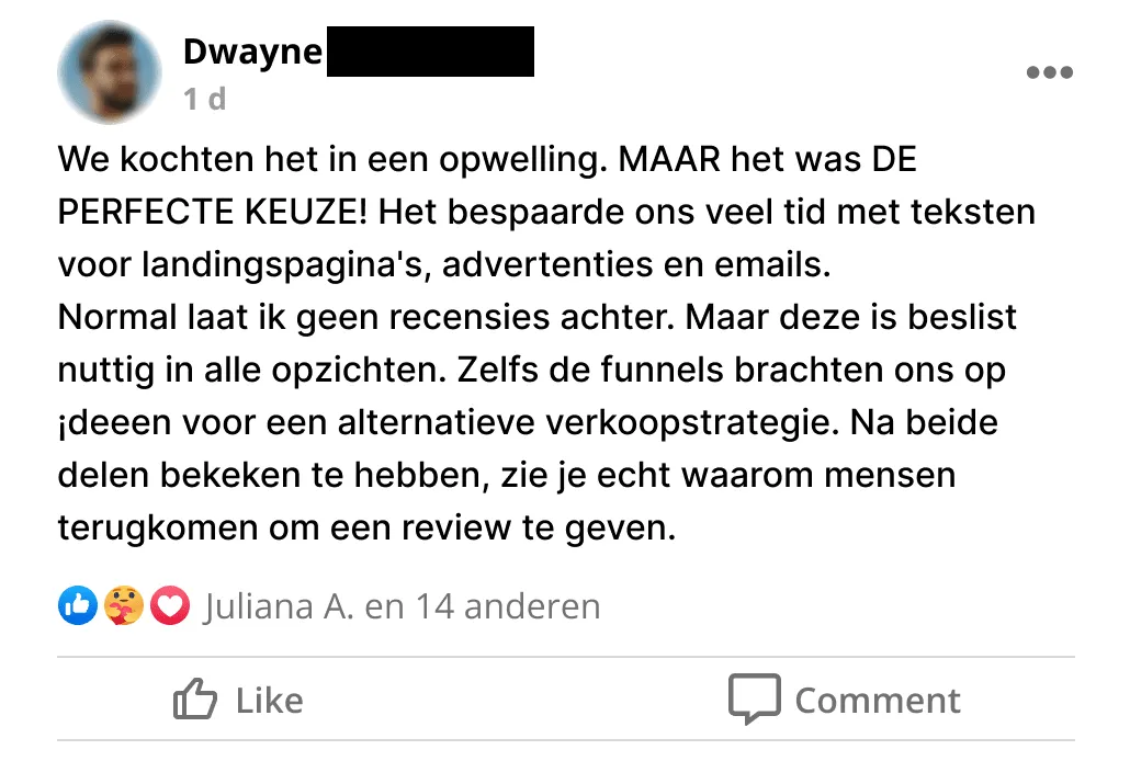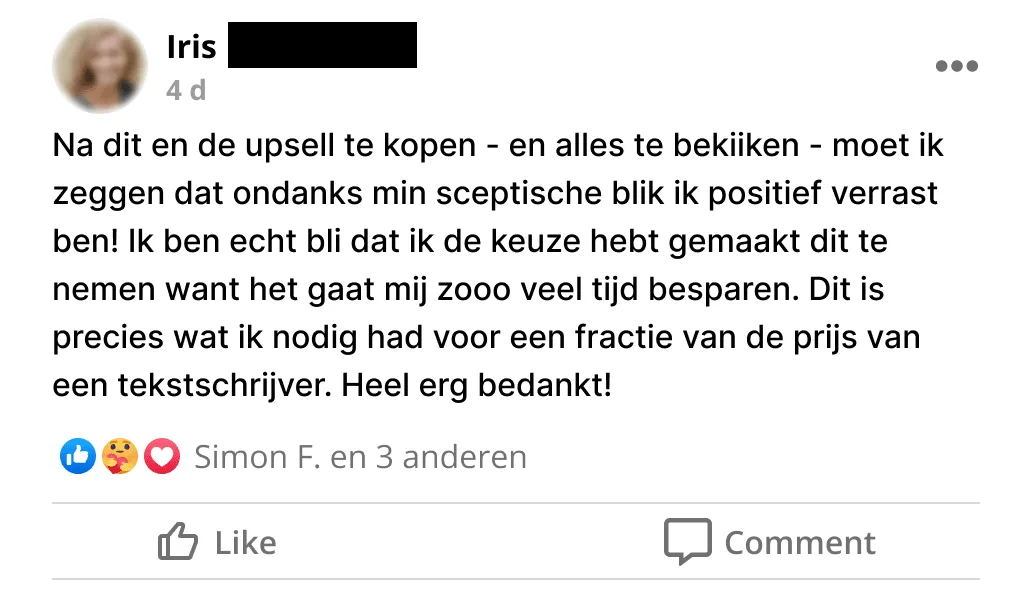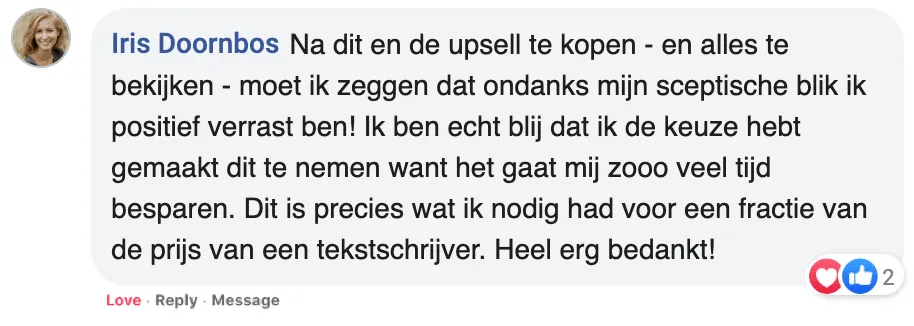 Je krijgt alle post voor social media, blogs, Facebook advertenties... maar ook sequences voor emails, productlanceringen, landingspagina's, upsells PLUS alle andere marketing content die je ooit nodig kunt hebben om je bedrijf te laten groeien!