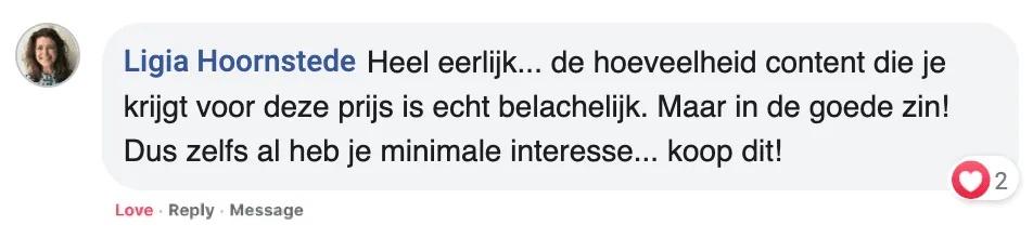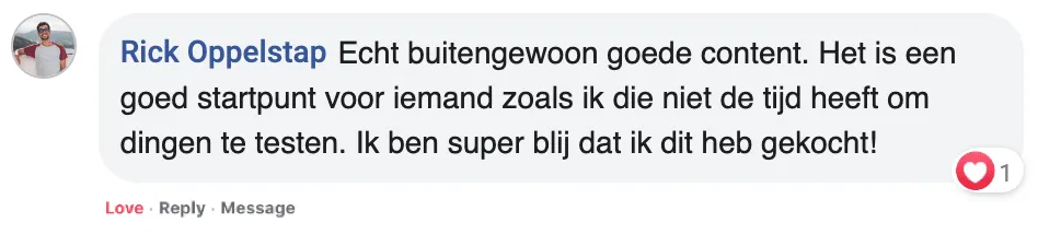 Normaal betaal je €97,00, MAAR omdat we in een pre-launch fase zitten om zo reviews te verzamelen, geven we alles weg voor slechts €5,60. Natuurlijk kunnen we dit niet lang blijven doen, dus grijp deze kans nu het nog kan!